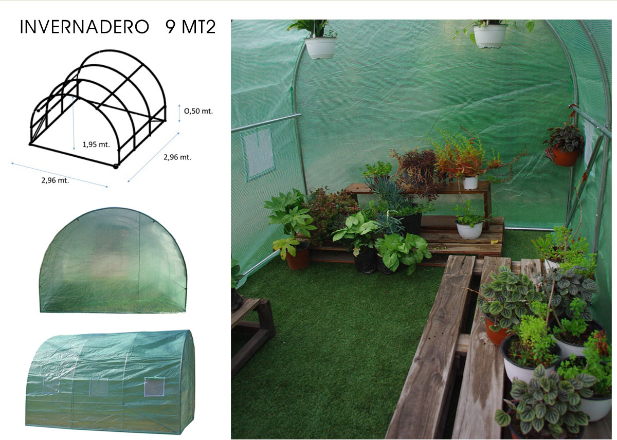 Invernaderos de Acero Galvanizado de 3 metros de largo, 3 metros de ancho y 2 metros de alto al centro, tubos de diámetro 25×0,7 mm, cobertor Tricapa, Antiescarcha y filtro UV de 140 gr. por m2. . !!Apúrate y Cotiza el tuyo!!